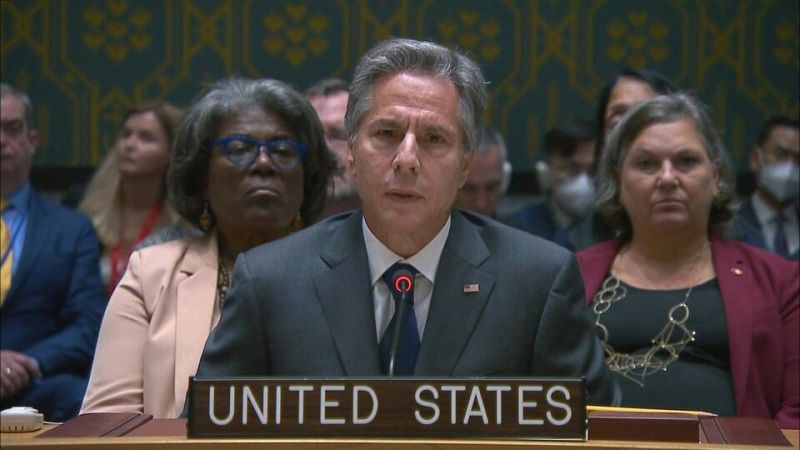S'exprimant devant l'instance onusienne, en présence du chef de la diplomatie russe, le Secrétaire d'État Antony Blinken a martelé que le monde "ne peut pas laisser Poutine s'en tirer comme ça".