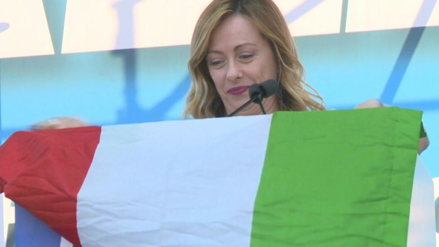 Giorgia Meloni est en passe de devenir la première femme Premier ministre d'Italie (AFP)De fait, Meloni et son parti sont les héritiers du Mouvement social italien (MSI), parti néofasciste créé après la Seconde Guerre mondiale dont elle a repris, à la fondation de Fratelli d'Italia fin 2012, la flamme tricolore.
