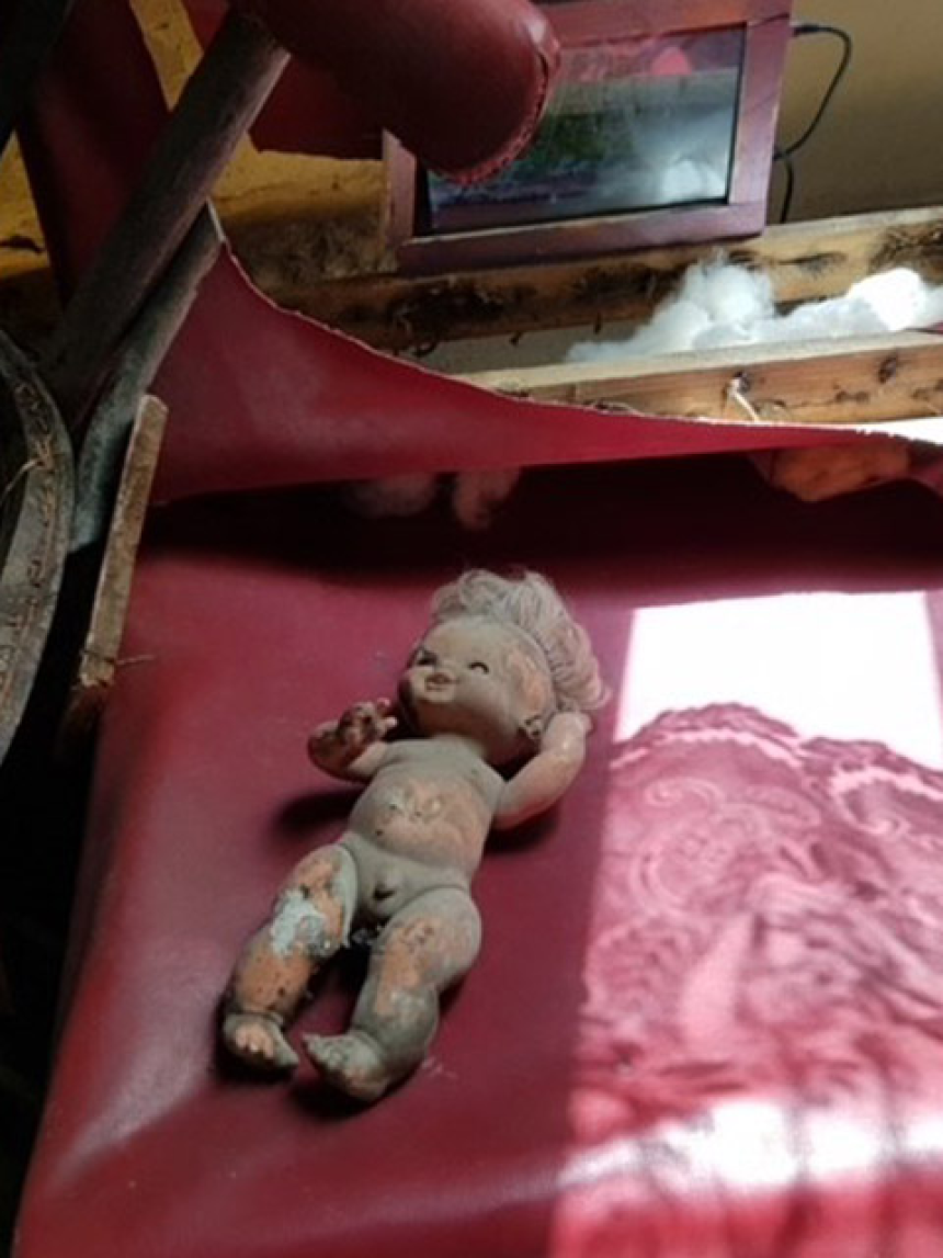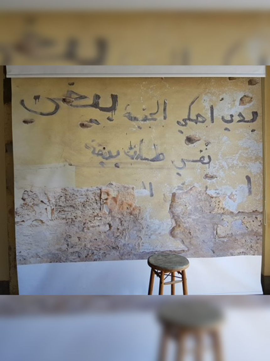 Photos jaunies, images surannées, visages réjouis, voix enregistrées, coupures de journaux relatant les événements de l’époque, tous ces documents s’enchevêtrent et se bousculent dans un fouillis de souvenirs lumineux. Les scènes, comme dans un film, défilent sur l’écran poussiéreux des murs lézardés, se mélangent à la peinture écaillée. Un passé factice s’étale sans pudeur au milieu des décombres: une vieille poupée démantibulée traîne sur un vieux sofa éventré. Une chaussure d’enfant, une chaise bancale, une ancienne télé et une vieille machine à imprimer se laissent porter par un sol jonché de débris.