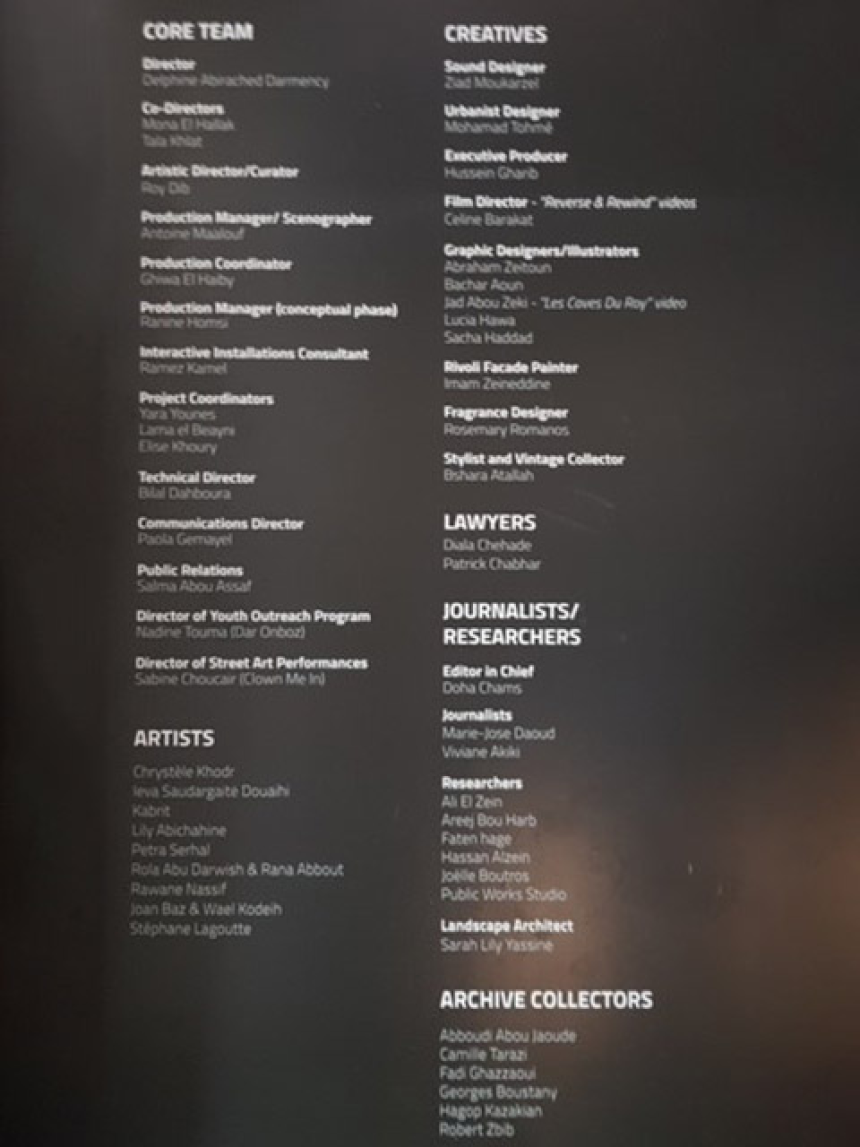 Allo Beirut nous invite à fouiller les entrailles d’une bâtisse rescapée du désastre, à pénétrer dans le labyrinthe d’un passé décomposé et faire devoir de mémoire! Comme dans une machine à remonter le temps, on survole un passé glorieux, celui des années 50 et 60 dites les années d'or, celui de l’insouciance et des fêtes effrénées, des soirées étincelantes et joyeuses dans des lieux cultes comme le cinéma Rivoli, les salles de spectacle ou les casinos, les pubs ou les dancings mythiques comme les Caves du Roy et le Casino du Liban.