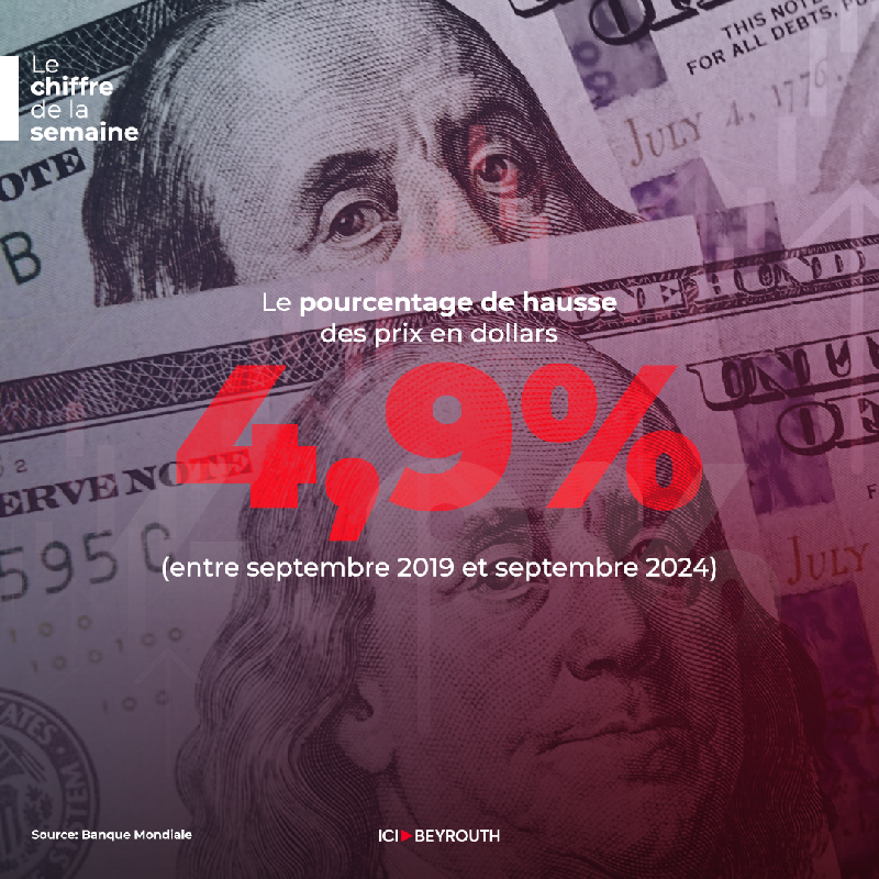 Au Liban, les prix en dollars ont augmenté de 4,9% entre septembre 2019 et septembre 2024, selon la Banque mondiale. Parallèlement, la Direction centrale des statistiques indique une hausse de 5.970% des prix en livres libanaises sur la même période.