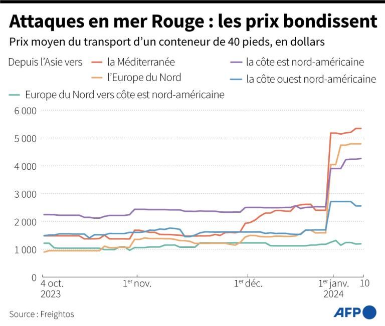 Une problématique renforcée par l’incertitude concernant un éventuel retour à la normale, même si les Houthis ont annoncé le 20 janvier qu’ils ne cibleraient désormais que les navires liés à Israël. “Si, au contraire, le trafic était coupé de manière permanente (à long terme), les flux logistiques s'ajusteraient, ce qui engendrerait des coûts supplémentaires, mais il faut souligner que le coût du transport dans le prix des biens importés reste très faible”, ajoute-t-elle.