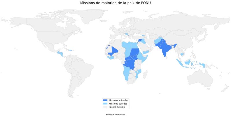 Les opérations de maintien de la paix mobilisent un large éventail de pays contributeurs. Concernant les fournisseurs de troupes, ce sont traditionnellement les pays en développement qui apportent la majorité des Casques bleus. Les plus importants contributeurs incluent le Bangladesh, l'Éthiopie, le Rwanda, l'Inde, le Népal, le Pakistan, l'Indonésie et le Ghana.