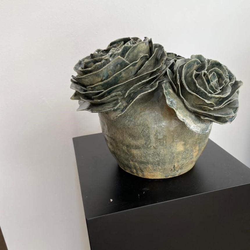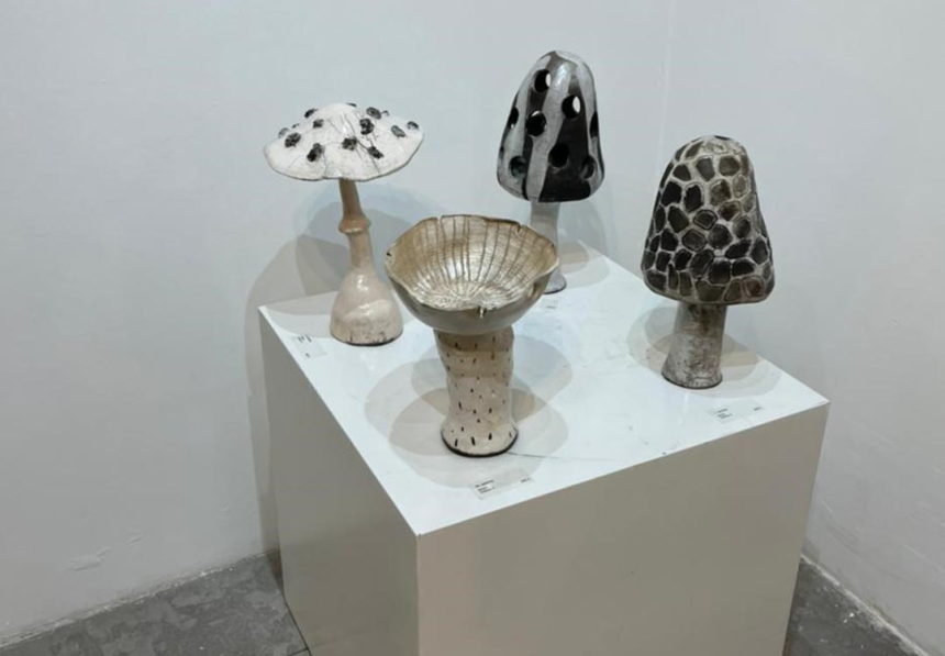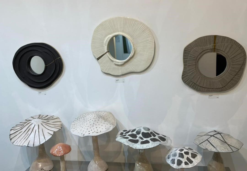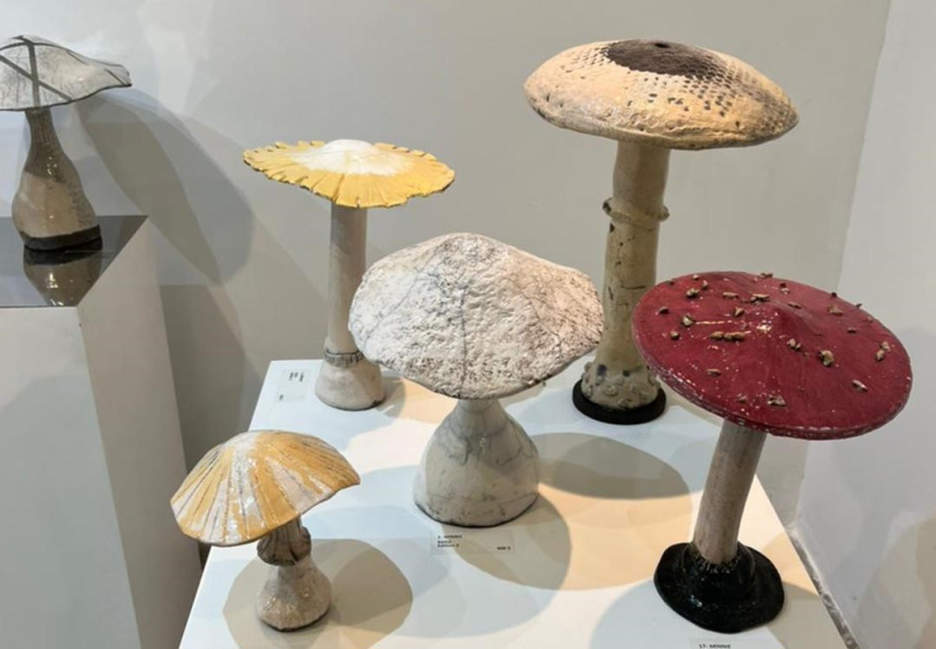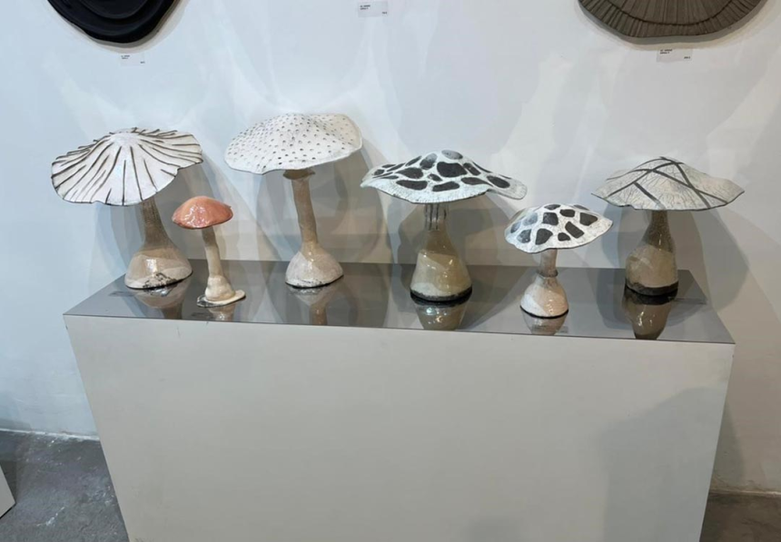 Passionnée de céramique depuis une dizaine d’années, elle n’a jamais pensé exposer et ne supporte pas qu’on la prenne pour une artiste. Bien qu’allergique aux champignons, elle en fut inspirée pour façonner ses premières pièces. Son obsession de découvertes et de voyages l’a amenée à créer une série de valises.