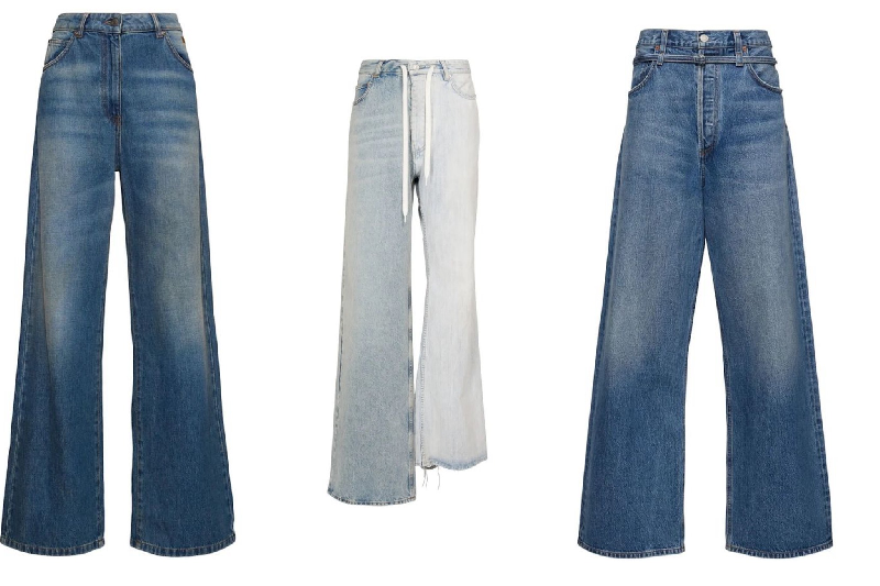 La tendance la plus marquée est celle du volume. Les coupes wide-leg, barrel ou flare généreux envahissent les collections. Finies les silhouettes serrées: le denim tombe droit ou en ballon, dans une sorte de déclaration textile. Chez plusieurs marques influentes, les pantalons larges se déclinent aussi bien pour les femmes que pour les hommes, renouant avec un esprit «slouchy», typique des années 90.