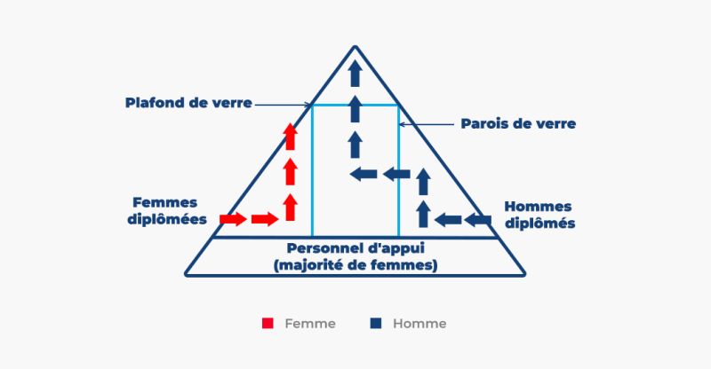 Ce schéma montre la progression professionnelle des hommes et des femmes diplômés dans un même milieu universitaire