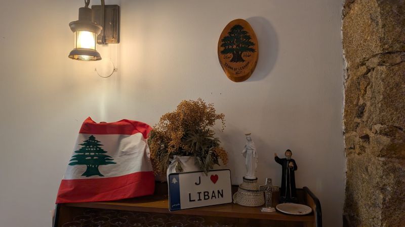 Hormis le menu, on retrouve différentes références au pays du Cèdre: un drapeau accroché à l’intérieur, une statue de saint Charbel et une photo de Beyrouth. À l’entrée de l’établissement, on peut également voir un drapeau libanais dessiné à la craie en dessous duquel on peut lire: #LiveLoveBeirut, #LiveLoveBouar et #LiveLoveAkkar.
