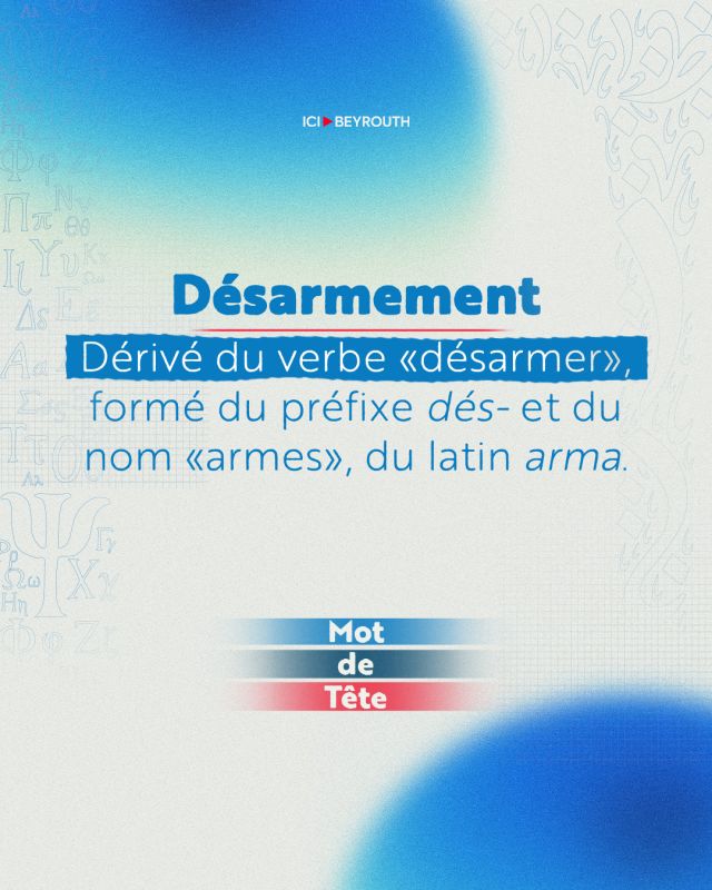 Le terme «désarmement» apparaît au XVIᵉ siècle, selon le Dictionnaire de l’Académie française. Il est dérivé du verbe «désarmer», formé du préfixe privatif dés-, qui marque l’action d’ôter ou d’inverser, et du substantif issu du mot «armes» (du latin arma).