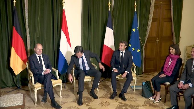 Dans une démonstration d'unité, le président français Emmanuel Macron et le chancelier allemand Olaf Scholz sont arrivés côte à côte au château de la capitale tchèque, flanqués du chef du gouvernement néerlandais Mark Rutte. Mais l'image ne suffira pas à masquer les tensions apparues récemment entre Paris et Berlin sur les questions énergétiques. Le président français Emmanuel Macron a indiqué jeudi soir qu'il pourrait annoncer de nouvelles livraisons d'armes, en particulier de canons Caesar.