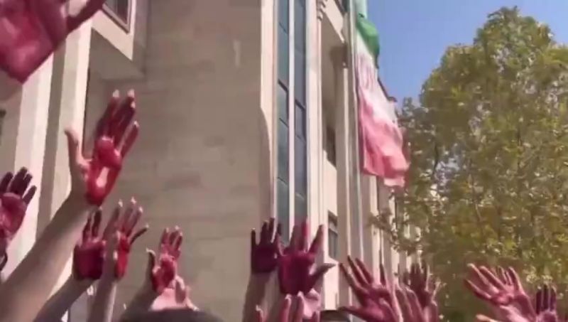 Des étudiants de Téhéran lèvent leurs mains peintes en rouge lors d'un rassemblement (AFP)"C'était terrifiant parce que j'avais entendu parler de ce qui pouvait arriver aux femmes envoyées en prison, grâce à l'expérience de ma propre mère", souffle-t-elle.
