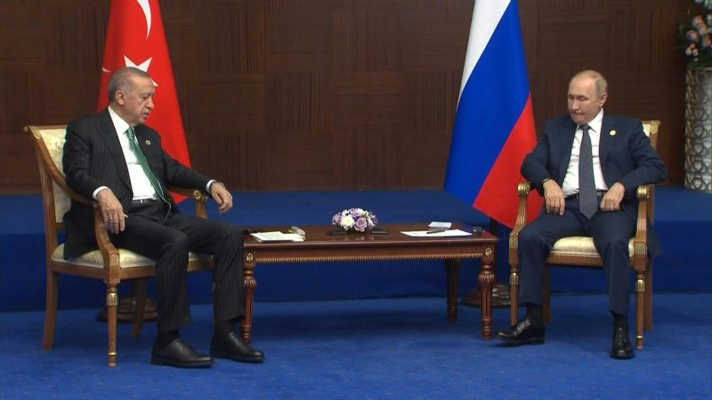 Lors de la session plénière du sixième sommet de la Conférence sur l'interaction et les mesures de confiance en Asie (CICA) à Astana, la capitale du Kazakhstan. Le président russe Vladimir Poutine fait partie des participants au sommet aux côtés du président turc Recep Tayyip Erdogan, du dirigeant palestinien Mahmoud Abbas et du président iranien Ebrahim Raissi.M. Poutine avait proposé jeudi de créer un hub gazier en Turquie alors que les livraisons gazières russes vers l'Union européenne sont affectées par les sanctions consécutives à la guerre en Ukraine et par les fuites des gazoducs Nord Stream 1 et 2.