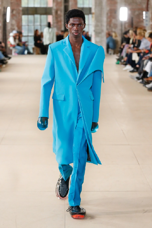La marque Botter, fondée par Lisi Herrebrugh et Rushemy Botter, cherche depuis ses débuts à utiliser la mode pour sensibiliser à l’urgence climatique. Leur nouvelle collection intitulée «The Plastic Sea», présentée le 28 septembre, n’a pas fait exception. Le duo, dont la singularité est de proposer des collections écoresponsables et engagées, a souhaité rendre l’élément aquatique présent dans toute la collection. Ballons transparents en guise de gants, cagoules semblables à des filets de pêche, manteaux façon combinaisons de plongée… La marque a voulu sensibiliser à la pollution plastique et à la nécessité de protéger les eaux de la planète.