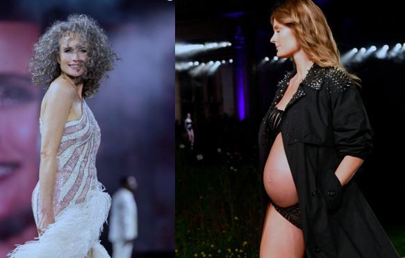 Andie MacDowell lors du defilé "Walk your Worth" by L’Oréal; Constance Jablonski, enceinte de huit mois, défile le ventre nu pour Etam