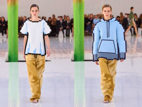 La maison espagnole Loewe a frappé un grand coup en présentant des vêtements pixelisés à la Minecraft qui ont fait forte impression. Des créations sorties de l’esprit du designer irlandais J.W. Anderson, devenu célèbre pour ses pièces androgynes. S'inspirant du métavers, auquel il a déjà fait plusieurs fois référence, il s’interroge notamment sur la relation entre Internet et la nature.
