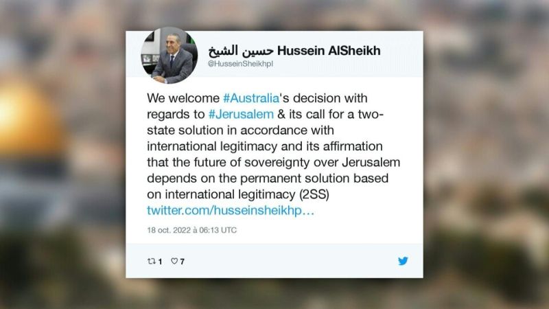 "Nous saluons la décision de l'Australie concernant Jérusalem et son appel en faveur de la solution à deux Etats (...) et sa garantie selon laquelle la souveraineté future de Jérusalem dépend d'une solution permanente basée sur la légitimité internationale", a écrit sur Twitter le ministre palestinien des Affaires civiles, Hussein al-Cheikh.