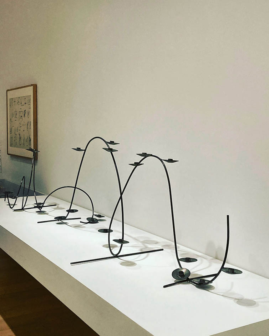 La première est consacrée à Alexander Calder, peintre, sculpteur, ingénieur de formation qui, de fil de fer pour dessiner et sculpter, entre équilibre et équilibre, tel un funambule de l’air, créera mobiles et stabiles, sculptant le vide, celui-ci devenant l’équilibre parfait projeté en ombre. Lumière sculptée par le vide et, tout d’un coup, dans cette musicalité tridimensionnelle, le silence devient souffle de vie.