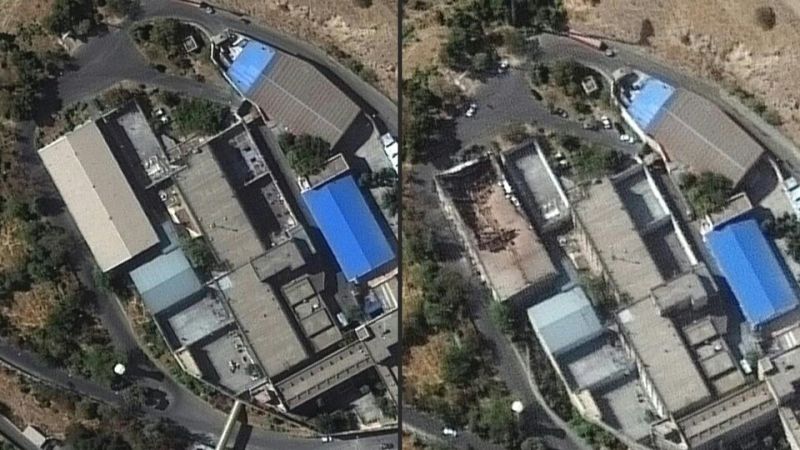 Images satellite de la prison d'Evine à Téhéran avant et après les incendies (AFP)