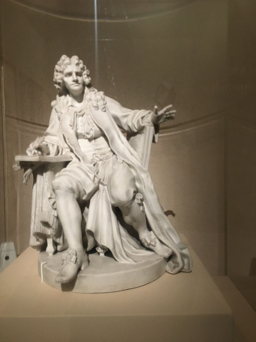 Organisée en partenariat avec la Comédie-Française, l’exposition offre un parcours dans l’œuvre de Molière qui en souligne la portée universelle. Le visage de Molière se reflète aussi à partir des traits que lui a attribués le sculpteur Jean-Antoine Houdon au XVIIIe siècle. Le buste en terre cuite est accompagné de deux portraits de Nicolas Mignard et Charles Coypel.
