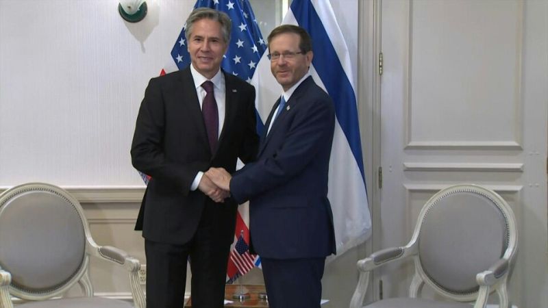 S'exprimant au début de sa rencontre avec Isaac Herzog, M. Blinken a affirmé que les Etats-Unis et Israël étaient "main dans la main contre les activités dangereuses, déstabilisantes et visant à susciter la terreur de l'Iran".