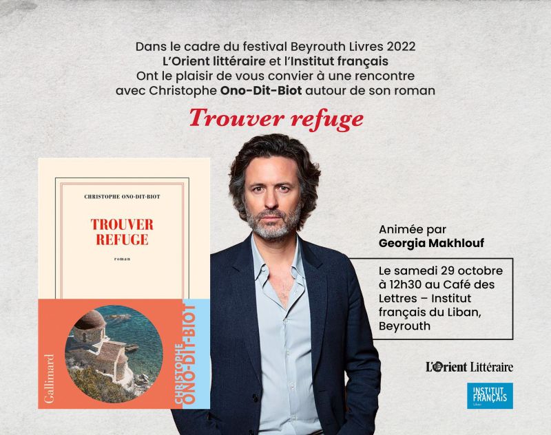 - à 12h 30 : un café avec Christophoe Ono-Dit-Biot autour de son roman Trouver refuge, présenté par Georgia Makhlouf (Café des Lettres)