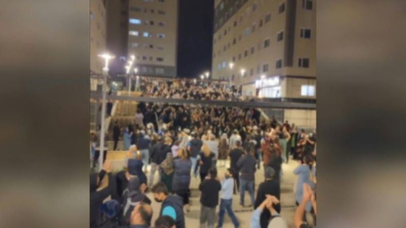Des manifestants se rassemblent dans une cour du complexe Chitgar, dans l'ouest de Téhéran, et scandent des slogans contre la République islamique. (AFP)
