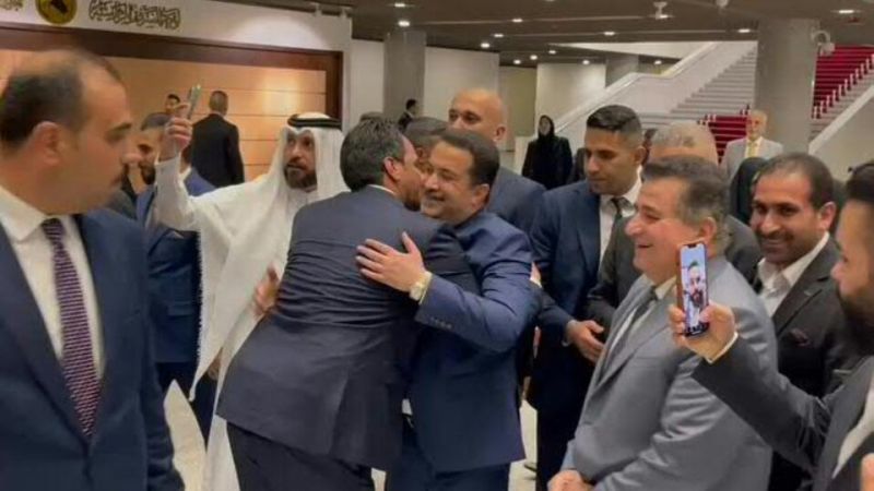 Les députés irakiens félicitent le nouveau Premier ministre désigné, Mohammed Shia al-Sudani (AFP)Porté par les factions pro-iraniennes qui dominent le Parlement, M. Soudani affirme cependant "ne pas vouloir adopter la politique des axes". Il promet de lutter contre la corruption et d'améliorer les services de base.