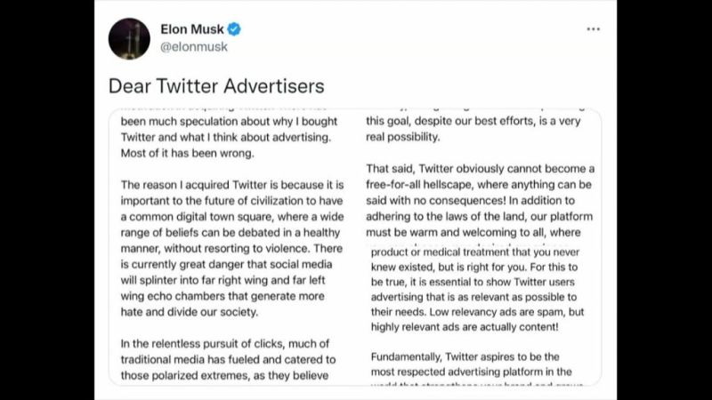 Ce message d’Elon Musk était spécifiquement adressé aux marques, qui rapportent l’essentiel des revenus de Twitter.