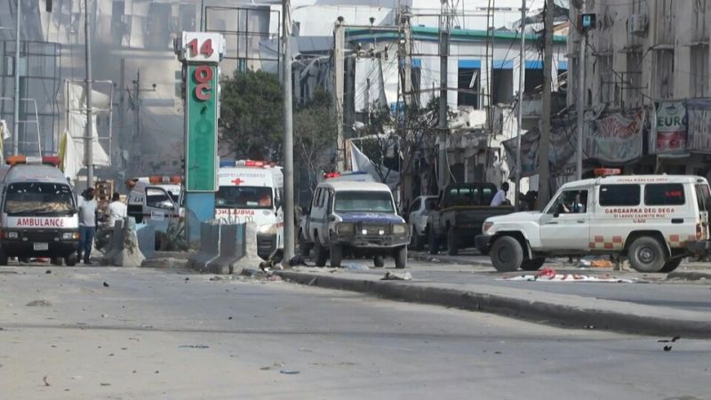 Deux voitures remplies d’explosifs ont explosé à quelques minutes d’intervalle dans l'après-midi près du carrefour animé de Zobe, suivies de coups de feu lors d’une attaque visant le ministère somalien de l'Education.