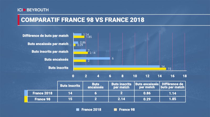 Dans l’ensemble, «France 98» a été supérieur à «France 2018» sur plusieurs aspects clés, comme l’efficacité défensive et offensive. Cependant en 98, la majorité des joueurs de l’équipe étaient à un moment de leurs carrières où ils n’étaient pas loin de leurs meilleurs formes (Thuram, Desailly, Zidane, Lizarazu, Barthez, Djorkaeff, Petit, Karembeu et Guivarc’h) avec pour les encadrer deux joueurs très expérimentés (Deschamps et Blanc). L’équipe de 2018 était, quant à elle, composée de joueurs qui n’avaient pas encore atteint, pour la plupart d’entre eux, le sommet de leurs formes. Ainsi, des joueurs comme Pogba, Varane, Hernandez, Pavard – auxquels il faut ajouter le meilleur jeune du tournoi en 2018, Kylian Mbappé – avaient encore une importante marge de progression en 2018. Ce qui augure de bonnes chances pour cette génération de laisser une trace encore plus forte dans l’histoire du foot français, en conservant son titre en 2022.