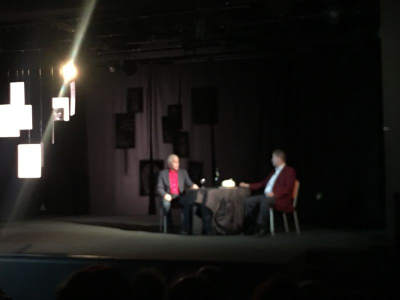 La pièce est un retour en arrière qui nous ancre dans le moment présent d’une conversation entre les deux auteurs disparus. Ils débattent au moment présent des questions de littérature, de théâtre, de la vie et de la mort… Ils se côtoient dans la vie et se suivent dans la mort à une intervalle de deux heures de temps. La conversation des deux acteurs est si prenante, si vraie, que l’on s’oublie le temps d’une scène, entre vie et mort, mots et idées, présent, passé et futur… Le temps, les personnages, les moyens d’expression, tout est un et nous prenons conscience de ce tout.