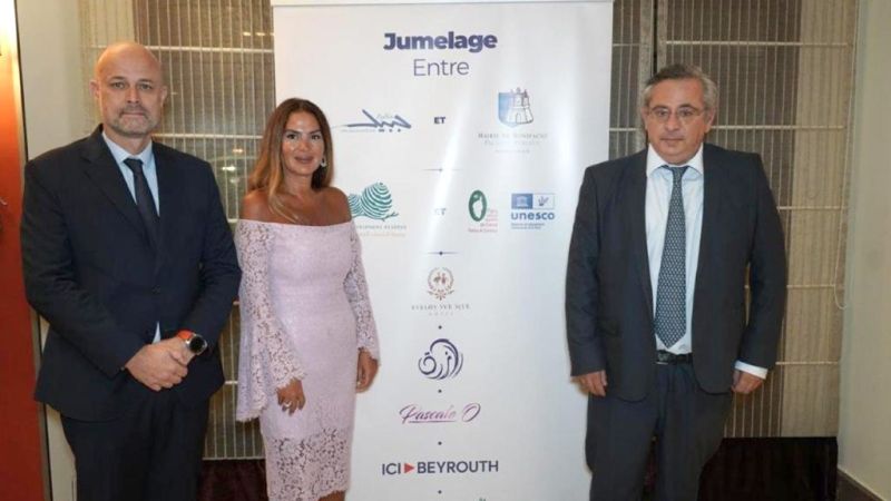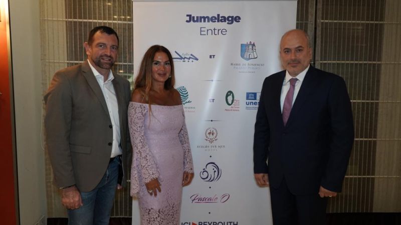 Le maire de Bonifacio Jean- Charles Orsucci, Pascale Ojeil et le maire de Byblos Wissam Zaarour.