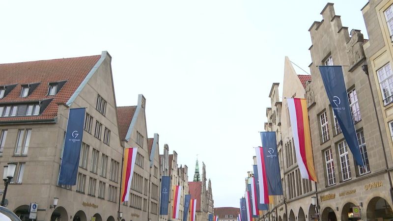 Un imposant dispositif de sécurité mis en place autour de l'hôtel de ville historique de la ville allemande de Münster, qui accueille la rencontre des ministres des Affaires étrangères du G7 les 3 et 4 novembre.