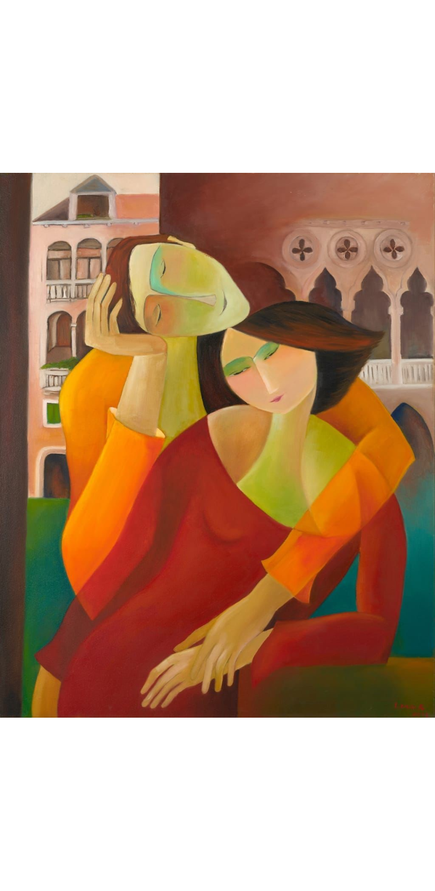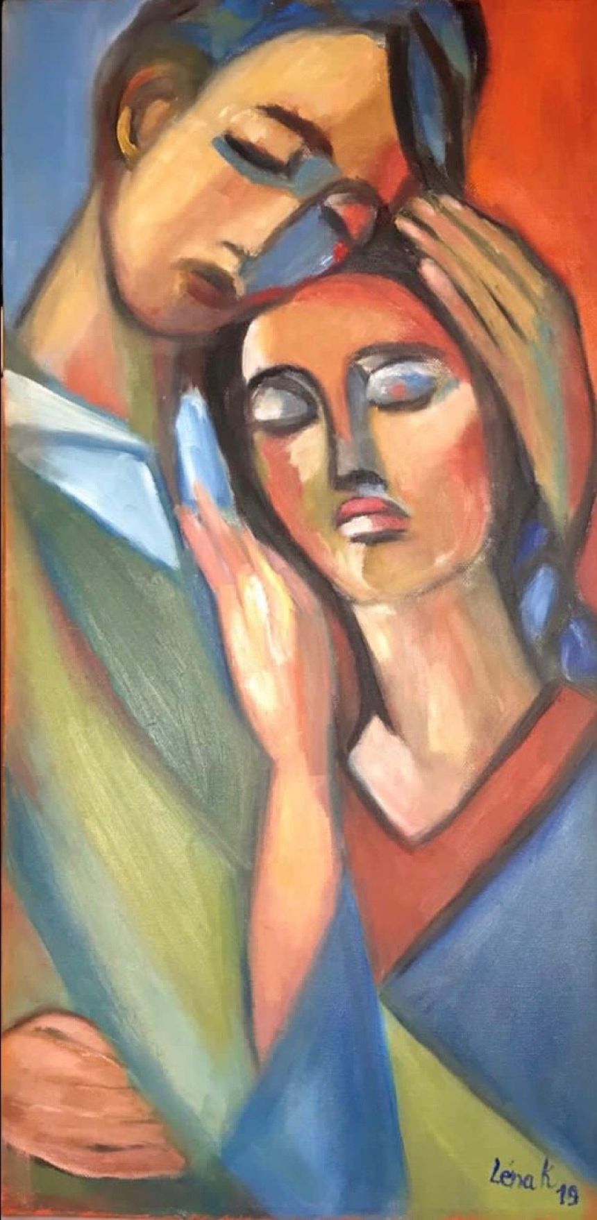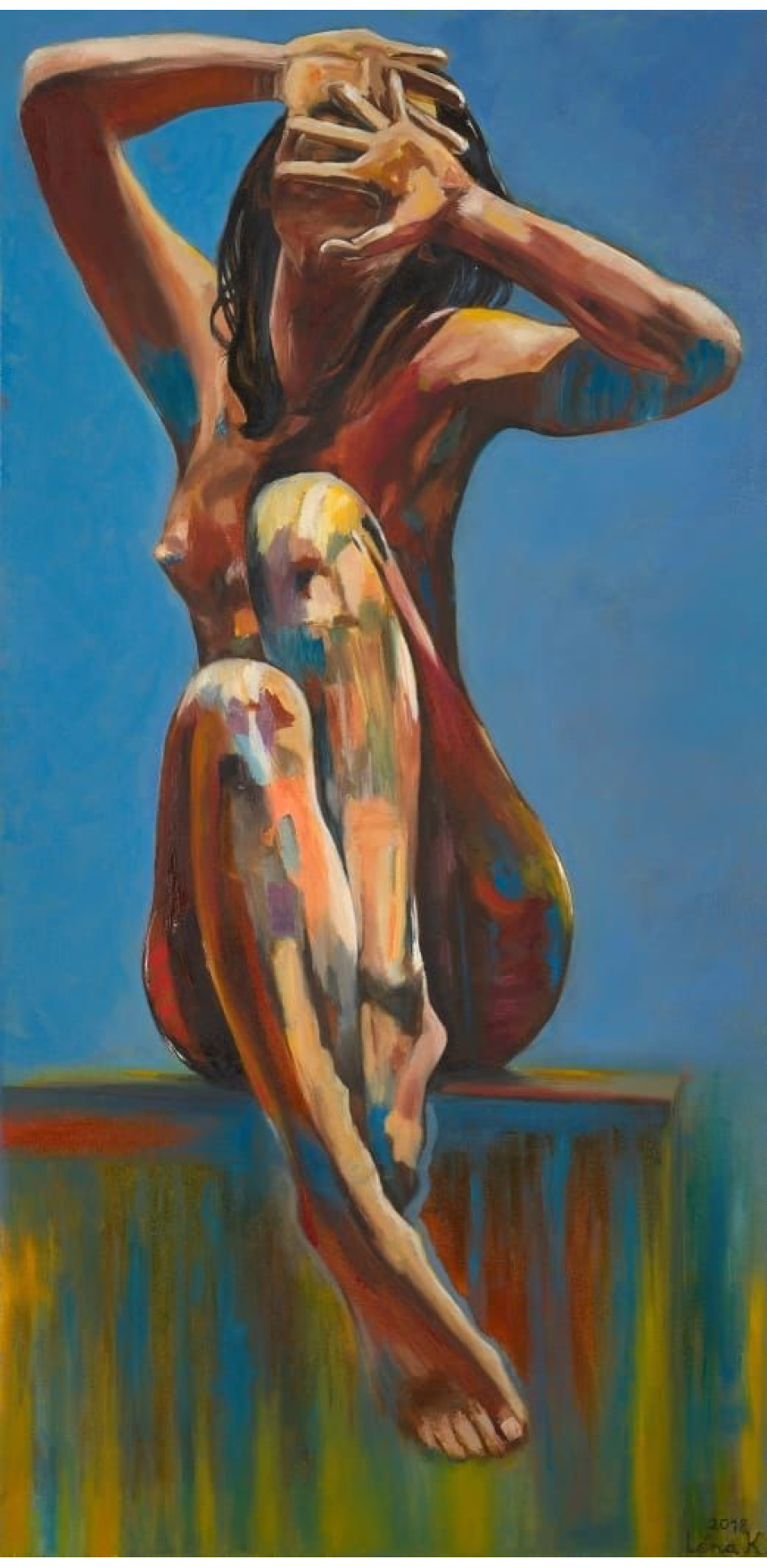 Les femmes sont au centre des toiles de Léna Khalifeh. Épanouies, pleines d’espoir, mélancoliques ou encore apeurées : ces peintures sont le reflet des différentes phases psychologiques par lesquelles la peintre est passée. Elle confie que son penchant pour la peinture a pris naissance dès sa jeunesse, lorsqu’elle a développé une passion pour le monde de l’art en général et de la peinture en particulier.