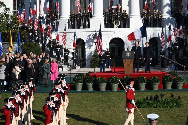 Drapeaux, coups de canon, fanfare militaire et dîner de gala: le président Biden a accueilli son homologue français avec un faste impressionnant. (AFP)C'était en réalité le début de la fin de la lune de miel entre les deux dirigeants qui, chacun à leur manière, attiraient la lumière. Et le prélude à une phase de tension et de crises à répétition.
