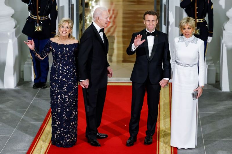 Comme à son habitude avec ses alliés, Emmanuel Macron a glissé du vouvoiement au tutoiement, tandis que le président américain s'est réjoui d'avoir pu, la veille, s'échapper pour un rare dîner en ville avec leurs épouses Brigitte Macron et Jill Biden.