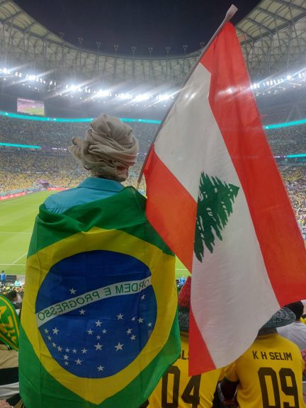 Un supporter libanais du Brésil assistant au match de son équipe favorite vendredi à Doha