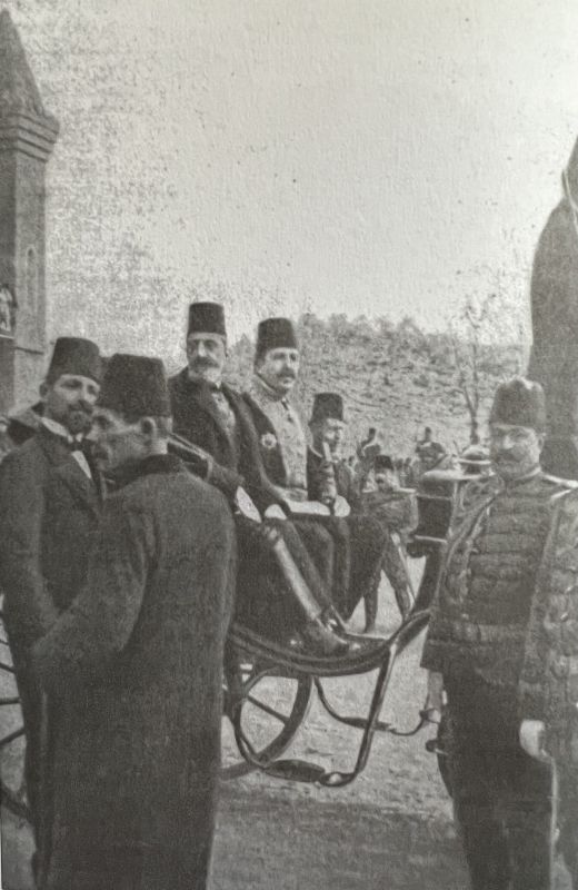 Ohannes Kouyoumdjian en carrosse (à gauche) devant le Sérail du gouvernement du Mont-Liban à Baabda.Le Génocide