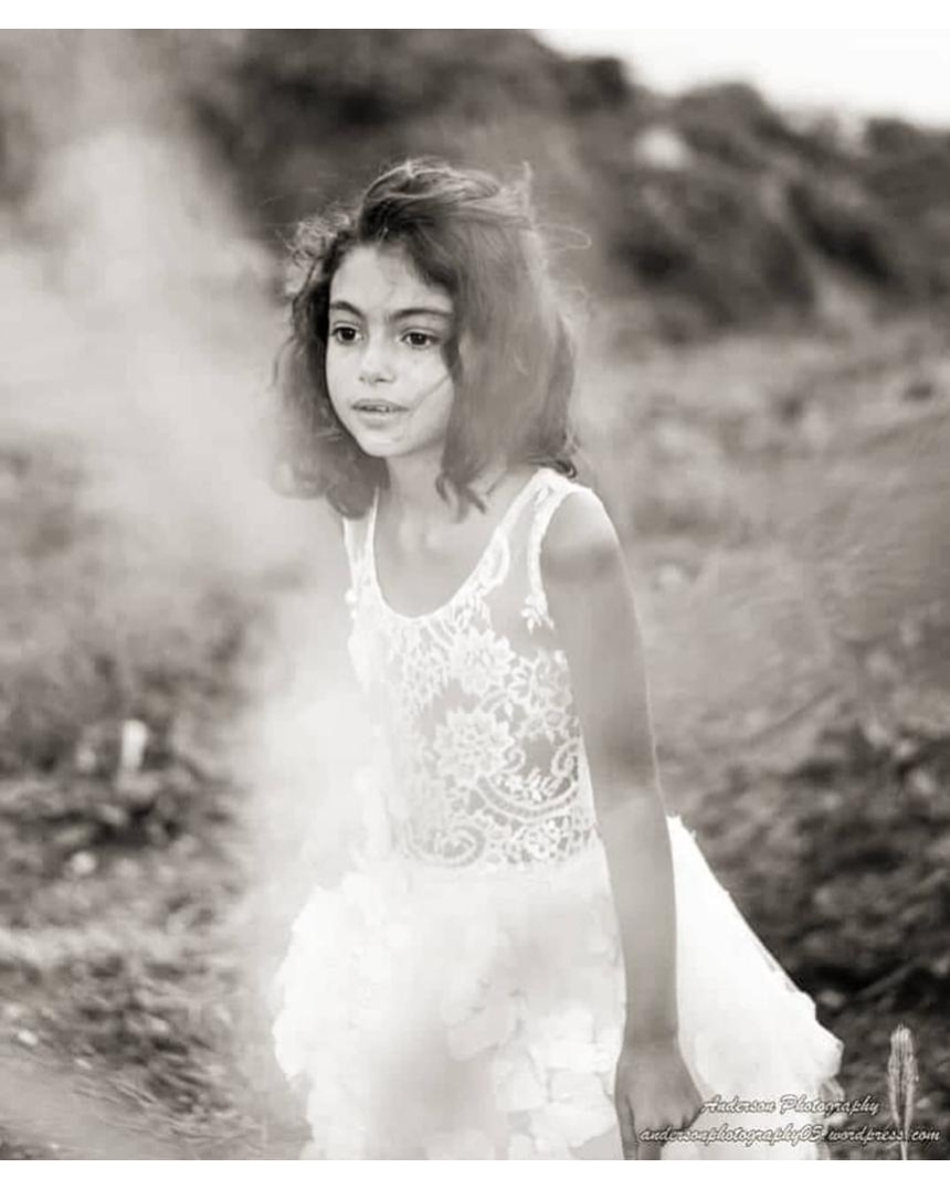 Je suis marquée par les habits d’antan, d’une période durant laquelle les vêtements d’enfants se transmettaient tel un précieux héritage. Mes créations sont intemporelles et inspirées des tenues délicates d’autrefois, réinterprétées avec une touche de modernité pour les princesses d’aujourd’hui. On y trouve des manches ballon, des cols Claudine, des cascades de guipure et des touches caractéristiques de la belle époque.