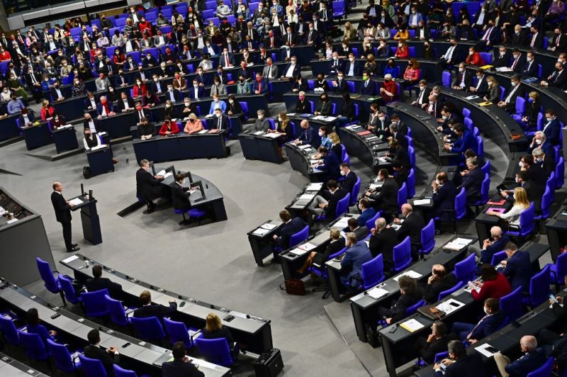 Olaf Scholz devant les députés au Bundestag.