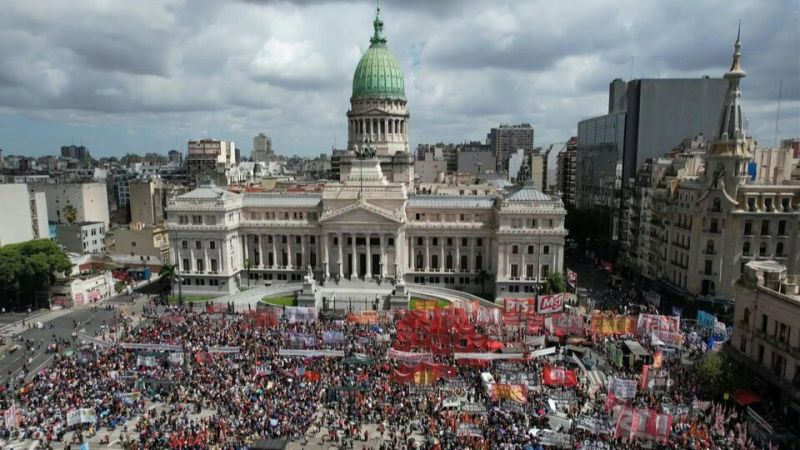 Des groupes de gauche manifestent devant le Parlement argentin alors que les législateurs débattent d'un plan permettant au pays de rembourser une dette de 45 milliards de dollars au Fonds monétaire international (AFP).