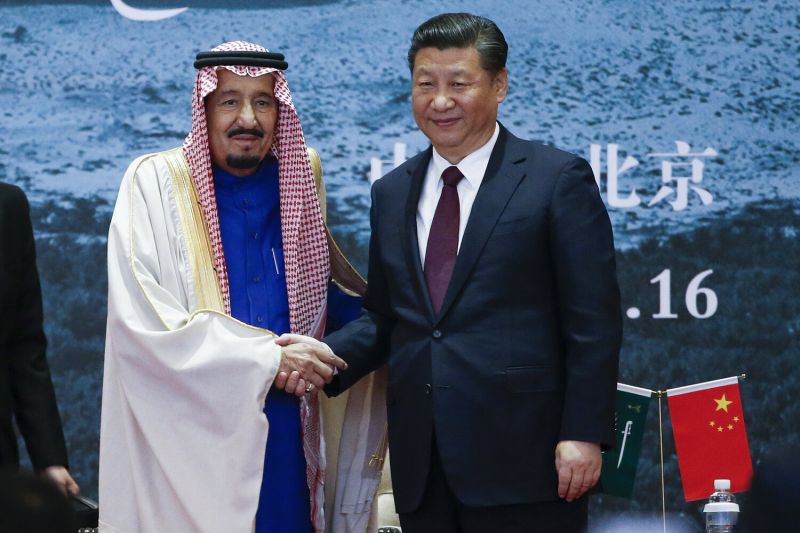 Le président chinois Xi-Jinping et le roi d'Arabie Saoudite Salmane à Pékin en 2017 (AFP)La baisse de la production décidée en octobre par les pays exportateurs de pétrole a toutefois ulcéré Washington qui a dénoncé un "alignement avec la Russie".