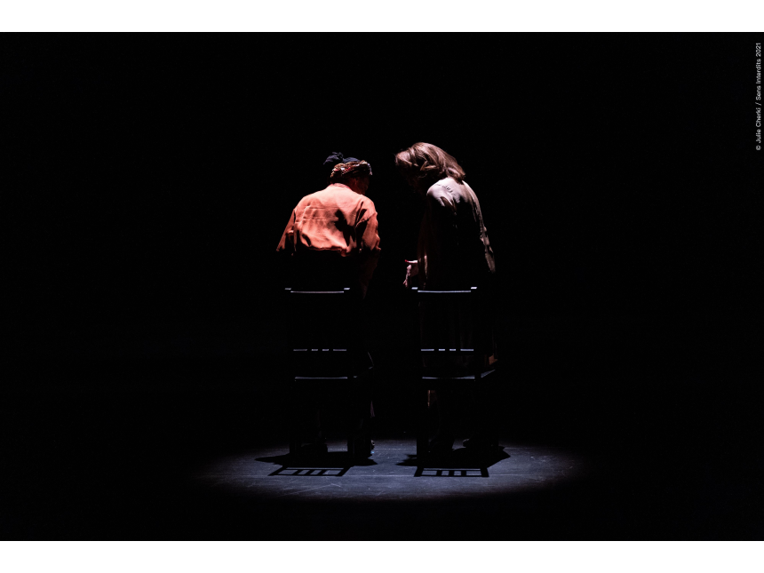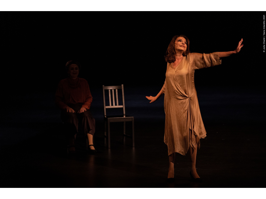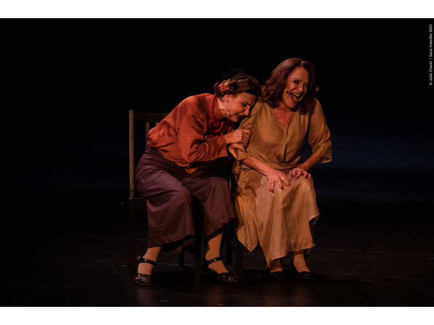 CK: Je suis personnellement auteure et metteuse en scène. J’ai écrit le texte pour les deux actrices et l’ai travaillé pendant deux ans. Le temps de travail comportait des recherches et des interviews avec des actrices de leur génération, plus âgées ou plus jeunes, afin d’avoir accès aux archives. Randa Asmar et Hanane Hajj Ali sont mes archives vivantes. J’écrivais, je partais en résidence, puis réécrivais et je demandais à Randa et Hanane de commenter le texte durant des résidences de création à trois au théâtre Tournesol. À partir d’improvisations, je découvrais de nouvelles choses et réécrivais. J’ai au moins sept brouillons de ce texte que j’ai faits en sept ans. Néanmoins, en assistant au spectacle, on pourrait croire qu’elles improvisent. Cette pièce relate le parcours des actrices durant la guerre civile; comment des femmes comme elles ont passé plus de la moitié de leur vie à travailler dans le théâtre, avant même que je sois née… Imaginez à quel point je suis chanceuse.