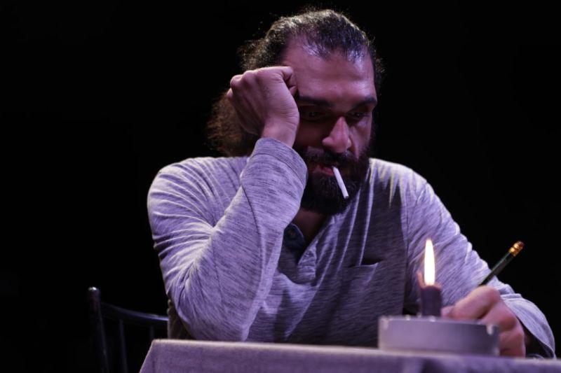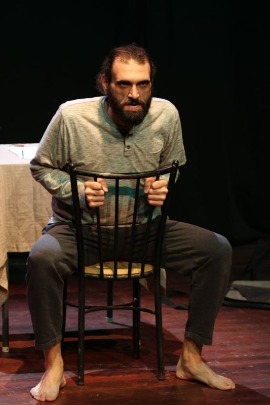 Lorsque j’ai écrit l'adaptation de la nouvelle en pièce de théâtre, l’idée m’est venue de l’exécuter en monodrame. Dans la nouvelle, il y a environ neuf personnages. La pièce dure 45 minutes. La jouer avec neuf acteurs n’était pas logique. Ce n’était pas mon but d’être seul sur les planches. On aurait pu être deux ou trois, ou même toute une équipe. C’est juste que c’était ma première perception et je l’ai poursuivie. En fait, j’avais travaillé à cette adaptation en 2006, alors que je préparais mon diplôme d’études supérieures à l’Université libanaise. Cependant, j’ai changé d’avis et pris une tout autre direction: The Goat or Who Is Sylvia? d’Edward Albee.