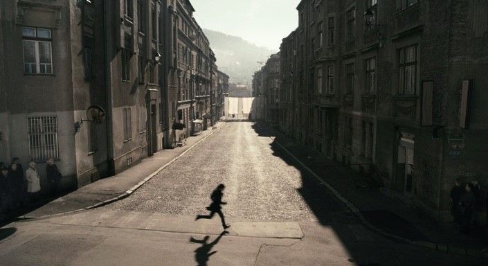 Anri Sala, 1395 Days Without Red (2011)1395 Days Without Red (2011) que l’exposition Une seconde d’éternité propose dans le cadre d’une carte blanche accordée en épilogue de ce parcours à Anri Sala, avec quelques autres – Take Over (2017) et Nocturnes (1999) –, appartient donc à cette deuxième période. L’artiste y filme une femme (Maribel Verdu) qui traverse Sarajevo au moment du siège de la ville de qui a duré mille trois cent quatre-vingt-quinze jours, de 1992 à 1995, pour se rendre à une répétition d’orchestre de la philharmonie de Sarajevo qui n'a pas arrêté ni de répéter, ni de donner des concerts pendant ce siège qui fut le plus long de l'histoire moderne. Pendant le siège, des milliers de citoyens ont dû traverser la «Sniper Alley», surnom de l'avenue principale de Sarajevo. C’est donc un jour comme un autre que filme Sala, encore un autre parmi ces 1395 jours de siège, durant lequel les deux récits de la répétition de l’Orchestre philarmonique de Sarajevo et celui du parcours de la jeune musicienne qui traverse la ville assiégée en fredonnant la Symphonie n°6 «pathétique» de Tchaïkovski, s’entrelacent pour se rejoindre. Deux récits donc qui, mêlant l’intime et le politique, nous invitent à travers la mémoire collective d’une ville, mais aussi au-delà des contextes géographiques et géopolitiques, à interroger l’universalité des émotions: «Le plan large, c’est la situation géopolitique qui percute la vie des gens. En plan serré, c’est la vie du personnage, en l'occurrence de cette femme. À travers elle, à travers sa respiration, cette histoire individuelle s'imprime dans la pièce de musique, particulièrement le premier mouvement de la Pathétique de Tchaïkovski en en dérèglant les 'tempi'. La respiration est saccadée par l’émotion, le danger, par la course, par la reprise du souffle, en allant même à impacter les fredonnements de la musicienne qui répète l’air dans sa tête tandis qu’elle progresse dans la ville. Soudain, on découvre une nouvelle Pathétique, imprégnée par les 'tempi' de l’actualité si l’on peut dire.» (Anri Sala)