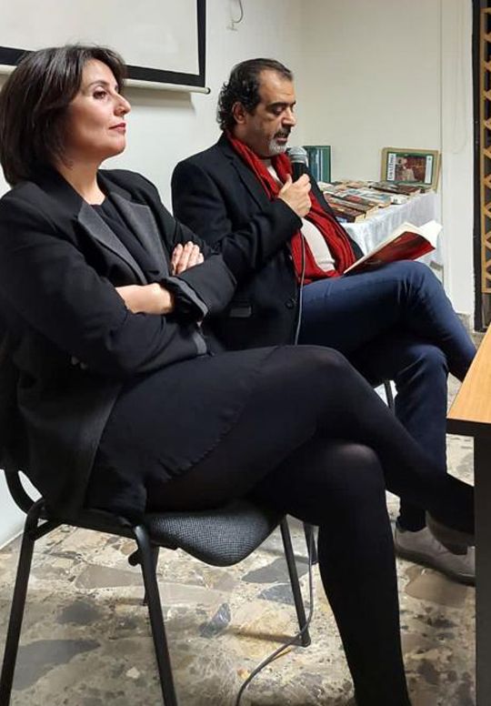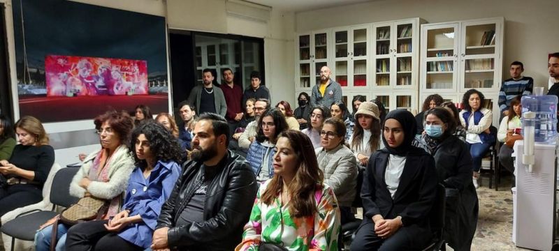 Le public dans les locaux de l'Institut culturel italien à Hamra assistant à la présentation de l'oeuvre en arabe.