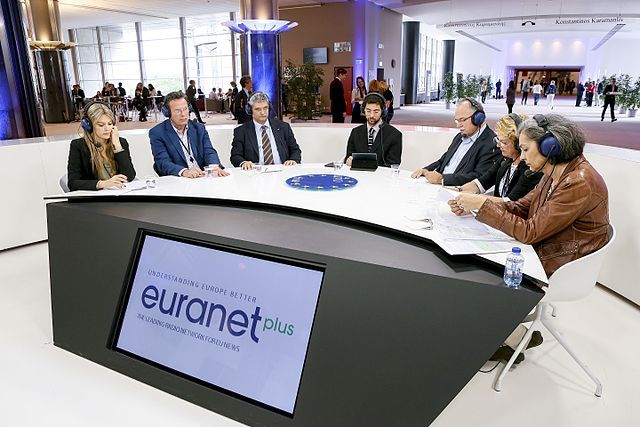 Eva Kaili présentait les journaux sur l'une des grandes chaînes privées grecques, Mega, de 2004 à 2007.(Crédit photo: https://commons.wikimedia.org/w/index.php?curid=49543183)Les Grecs la découvrent alors sur leur écran de télévision : elle présente les journaux sur l'une des grandes chaînes privées, Mega, de 2004 à 2007.