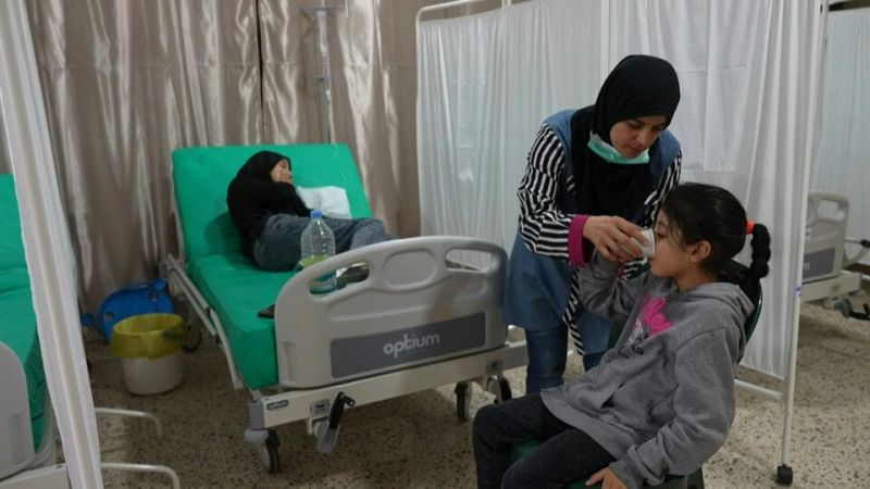 Des soignants s'occupent de patients atteints du choléra dans un centre de traitement dédié à cette infection diarrhéique aiguë, réapparue pour la première fois depuis 2009 en Syrie (AFP)Les conflits comme en Syrie ou la crise économique comme au Liban sont aussi propices.