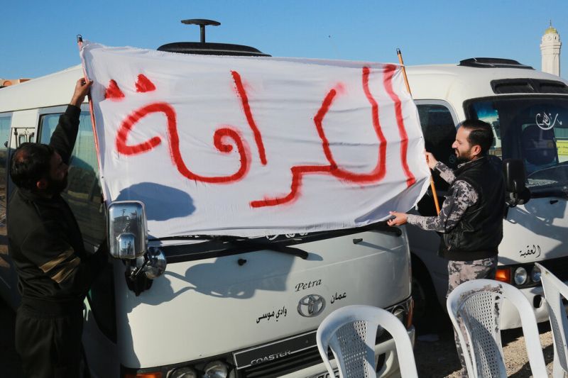Des chauffeurs de poids lourds ont garé leurs véhicules le long d'une autoroute et ont organisé un sit-in, selon des images diffusées par la télévision d'État Al-Mamlaka à Maan.