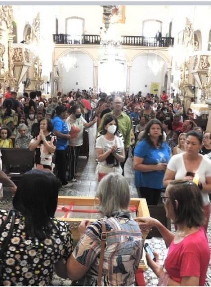 Défilé des fidèles devant le reliquaire en l’église Notre-Dame de la Miséricorde, à Barbacena.