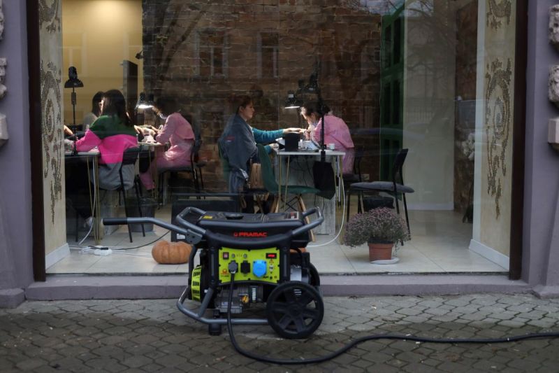 Cette photo d'un salon de manucure à Kiev rappelle sûrement de (mauvais) souvenirs aux Libanais, à l'époque où les petits générateurs auxiliaires assuraient le courant pour quelques heures par jour, avant que les gros groupes électrogènes prennent le relais...Le bilan humain le plus lourd des nouvelles attaques a été enregistré dans la région centrale de Dnipropetrovsk, où quatre personnes ont été tuées et quinze autres blessées, a déclaré le chef-adjoint du cabinet de la présidence ukrainienne Kyrylo Timochenko.